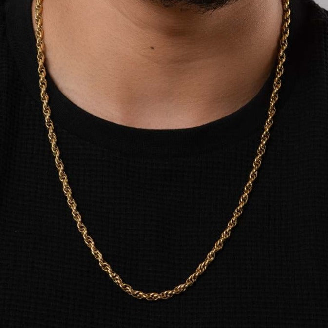 A bold yet timeless piece crafted with a classic rope twist design, symbolizing strength and elegance. Its interwoven links give off a rich shine and flexible feel, perfect for daily wear.